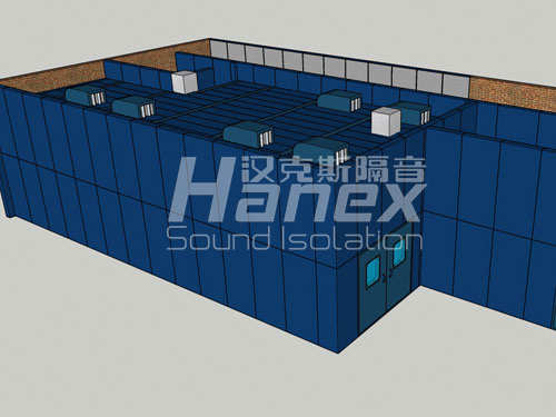 該方案,簡單來說,就是將設備關在一個兩層盒子內。以使噪聲穿透兩層大隔音量的針對設計的隔音板后,能量大大減小,傳播至控制室時,噪聲以明顯減弱,聲級降低至60dB以下。以達到降噪要求。