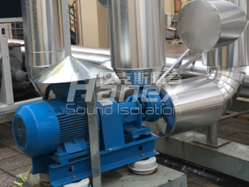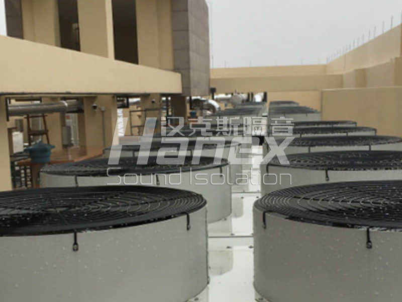 海寧四院住院樓平臺安裝有一組中央空調(diào)外機(jī),空調(diào)正常開啟狀態(tài)下層辦公區(qū)及病房區(qū)測量噪聲值達(dá)56分貝。漢克斯隔音設(shè)計1.空調(diào)機(jī)組減振(空調(diào)減震器),2.進(jìn)水管道減振,達(dá)到空調(diào)開啟時下層病房內(nèi)夜間測量值低于40分貝。
